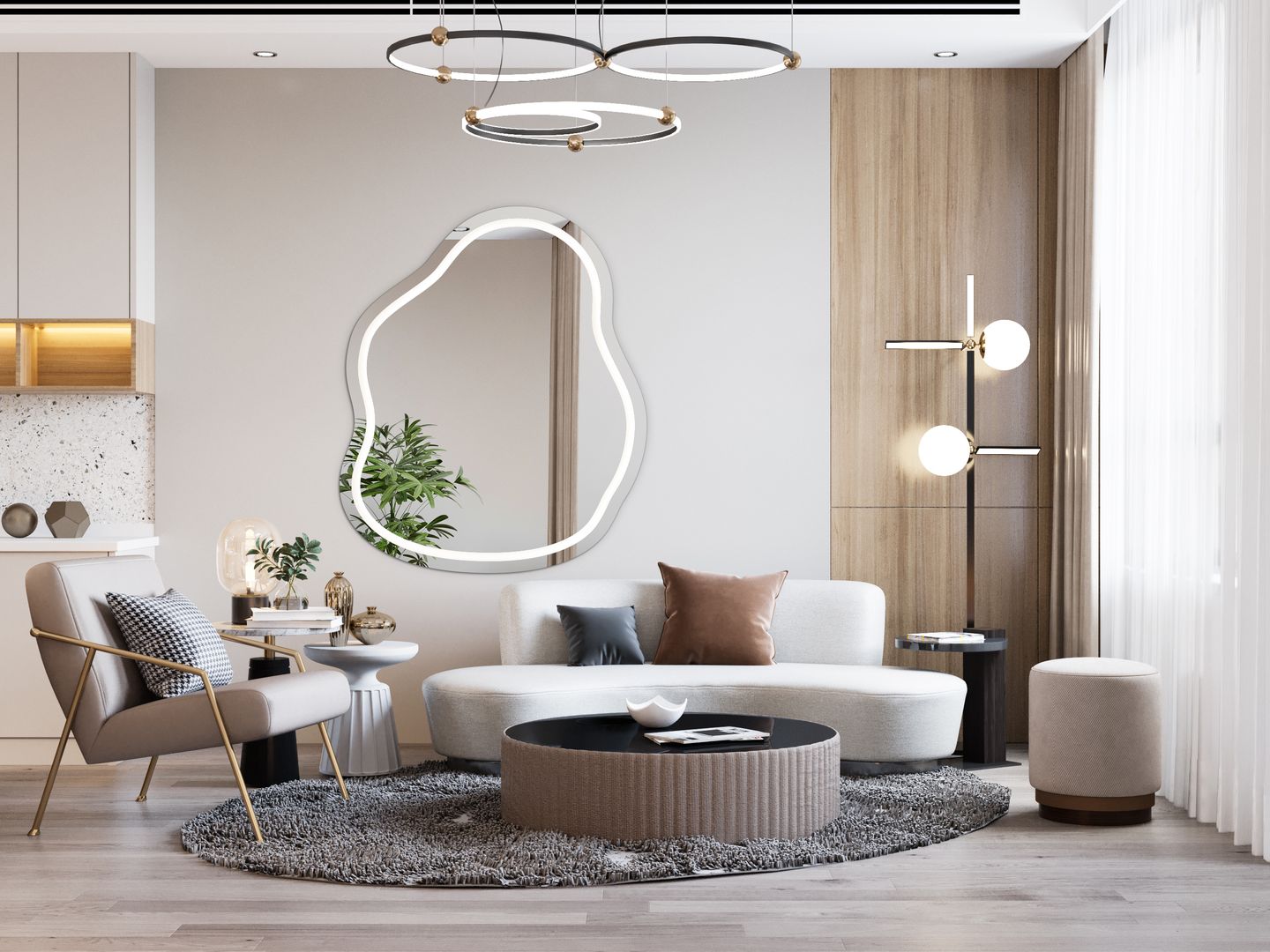 Milyen tükrök illenek a Cloud Dancer színű belső terekhez? Organikus formák