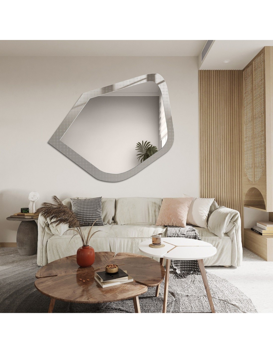 Ez a tükörpanel szabálytalan pöttyökkel rendelkezik, amelyek egyedi megjelenést kölcsönöznek neki. Minden panel egyedi, ami hozzájárul a vintage hangulat megteremtéséhez bármely helyiségben.