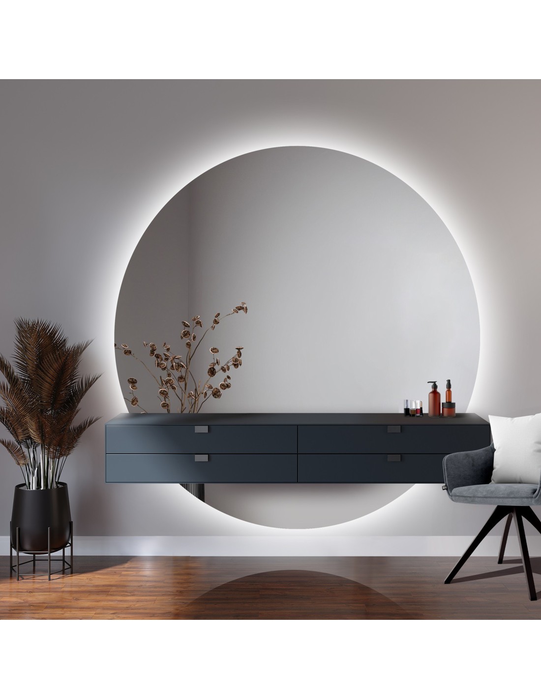 A standard világítás fényudvart hoz létre a tükör körül. LED burkolat választása esetén a fény egy speciális burkolatban van elhelyezve, ami azt jelenti, hogy nem keletkezik fényudvar a tükörfelület körül. A mindennapi sminkeléshez választott világítás esetén nem lehet kiegészítőt választani ebből a kategóriából.