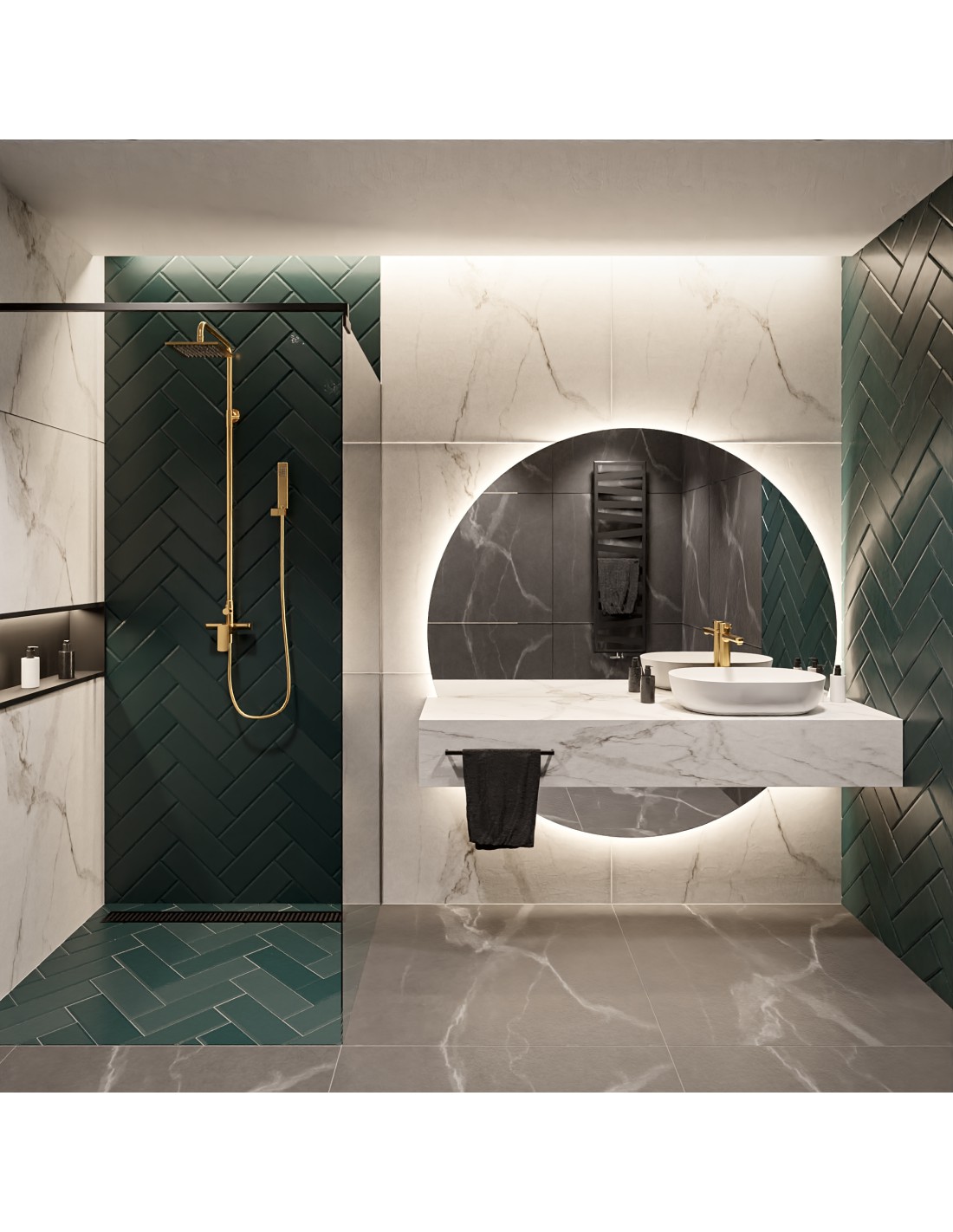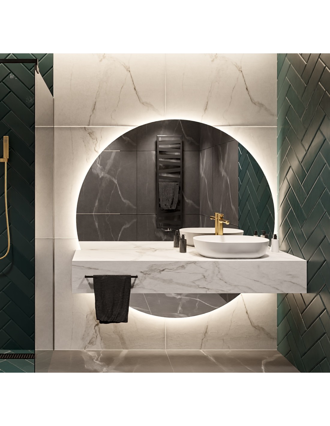 Kerek fürdőszobai tükör két részben világítással - WIRO LED